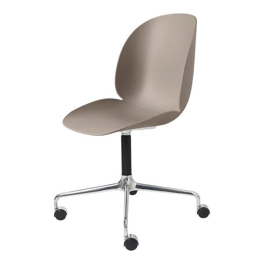 Beetle Meeting Chair - Un-Upholstered, 4-star w. castors, Polished Aluminum/Black Matte Base