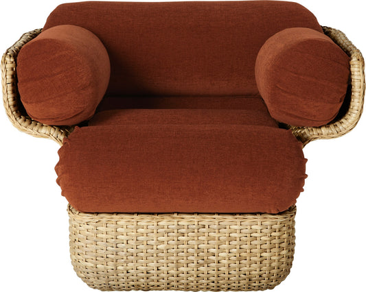 Bat Lounge Chair - Fully Upholstered, Low back, Conic base, Brass