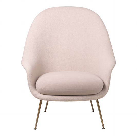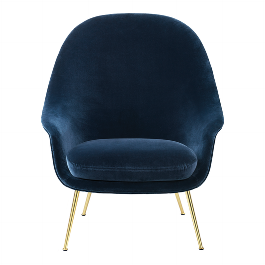 Bat Lounge Chair - Fully Upholstered, High back, Conic base, Brass Semi Matte