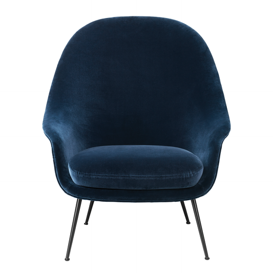 Bat Lounge Chair - Fully Upholstered, High back, Conic base, Black Matte
