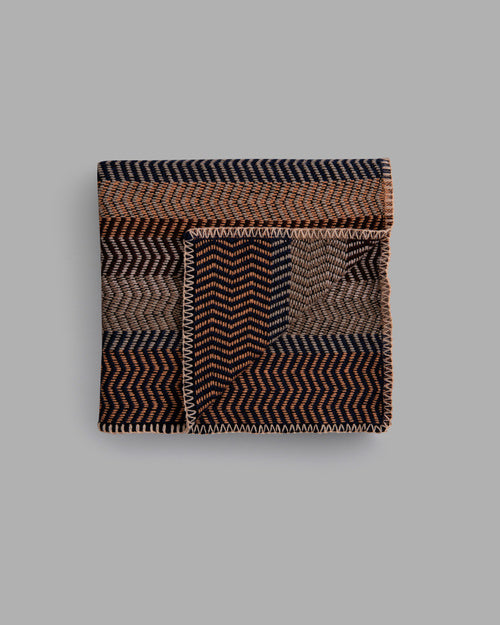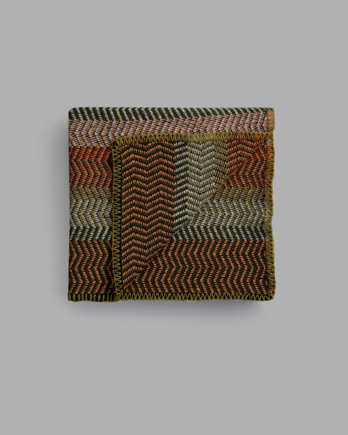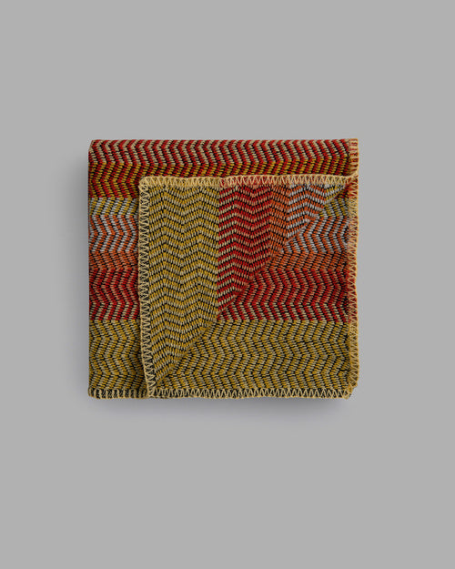 In this new interpretation, the typical repetitive rhythm of color is somewhat dissolved and the colors shift in a randomized, soft and meandering zigzag.
