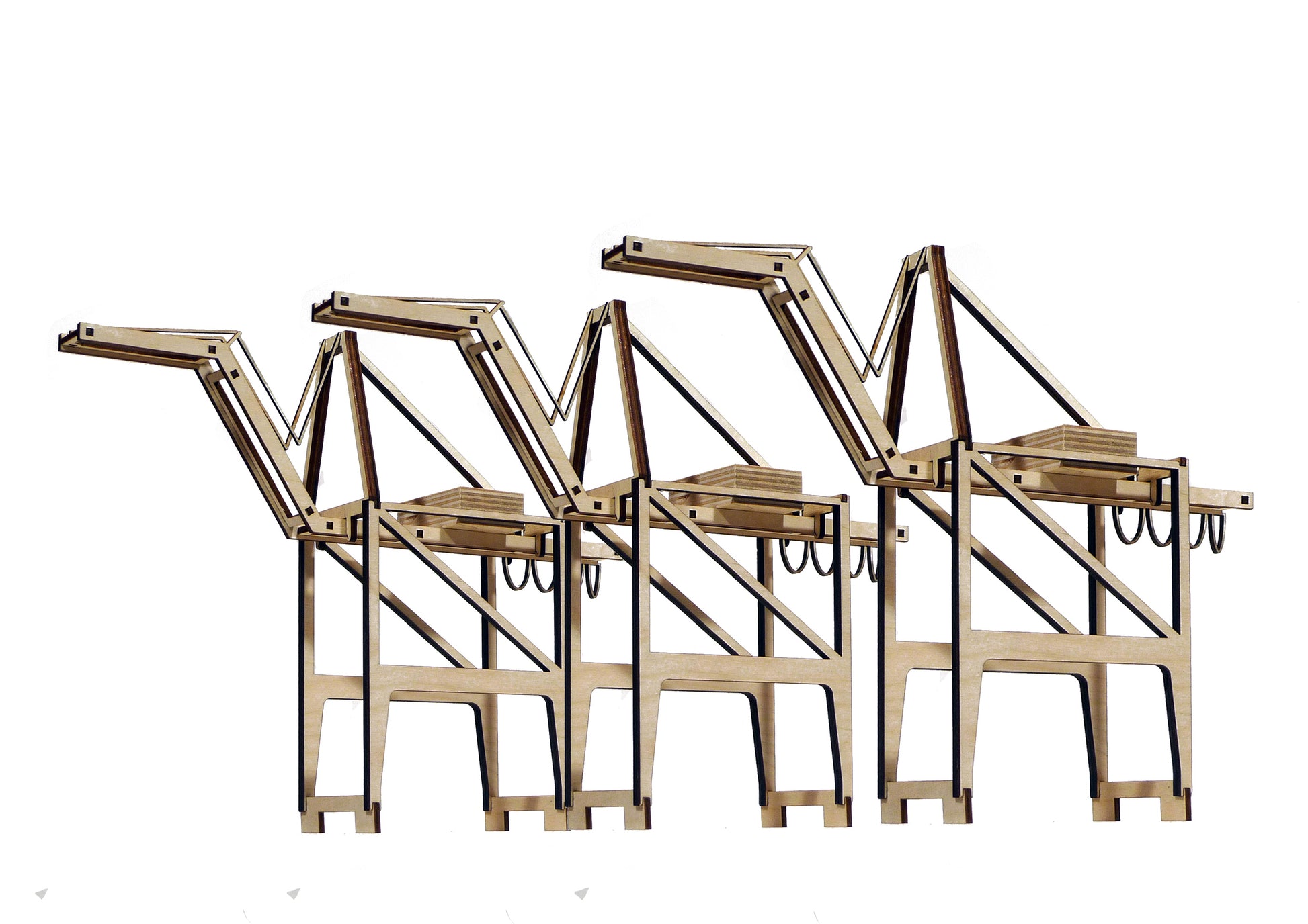 This is a scale model kit of a Port of Oakland Container Crane. Made of Lasercut Birch plywood.