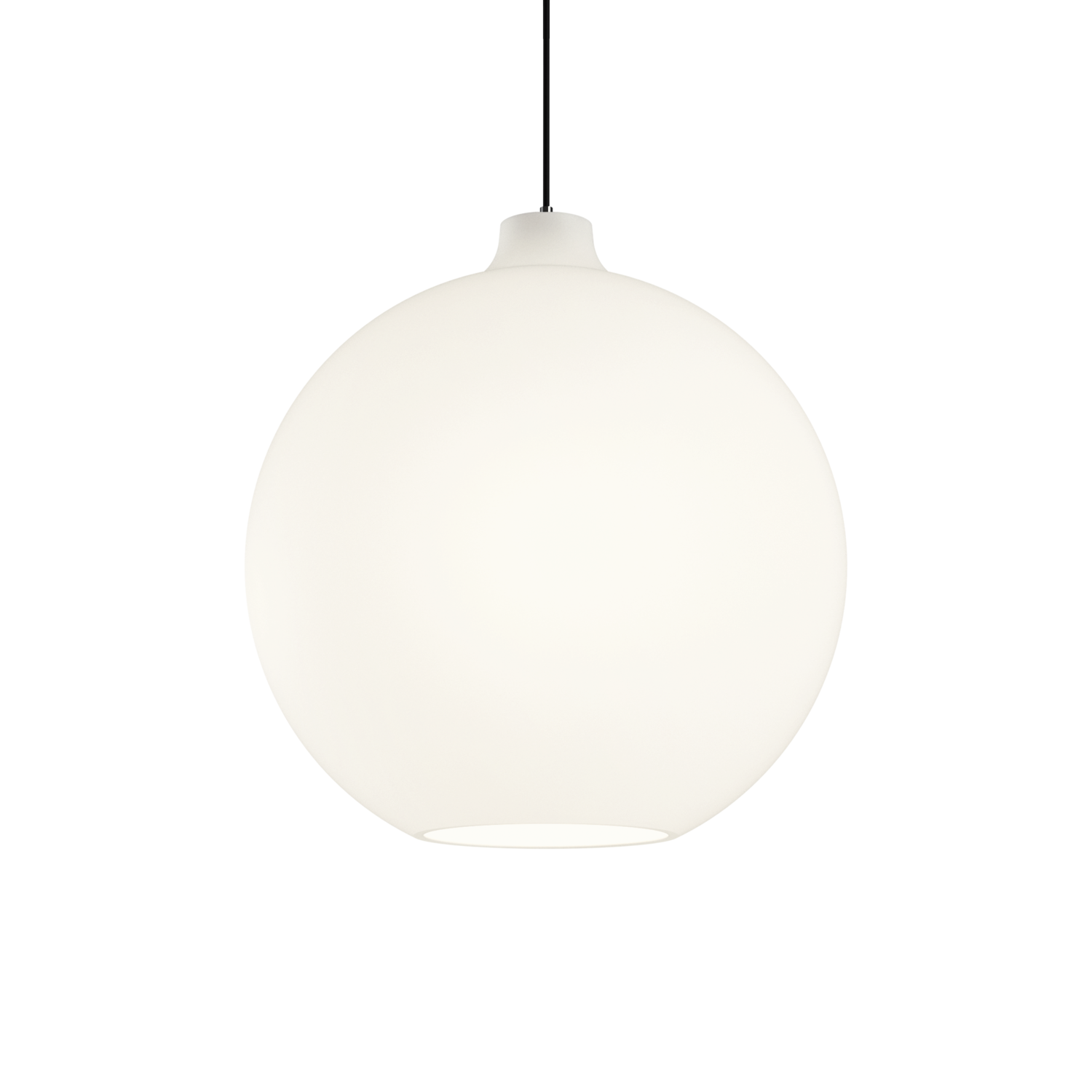 Shade: Handblown white opal glass. Pendant stem: Brushed steel.